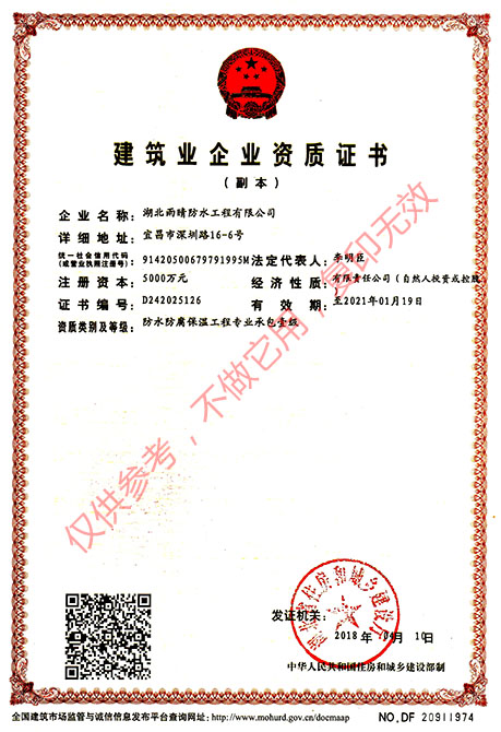 -國(guó)家防水防腐保溫工程專業(yè)承包壹級(jí)資質(zhì)